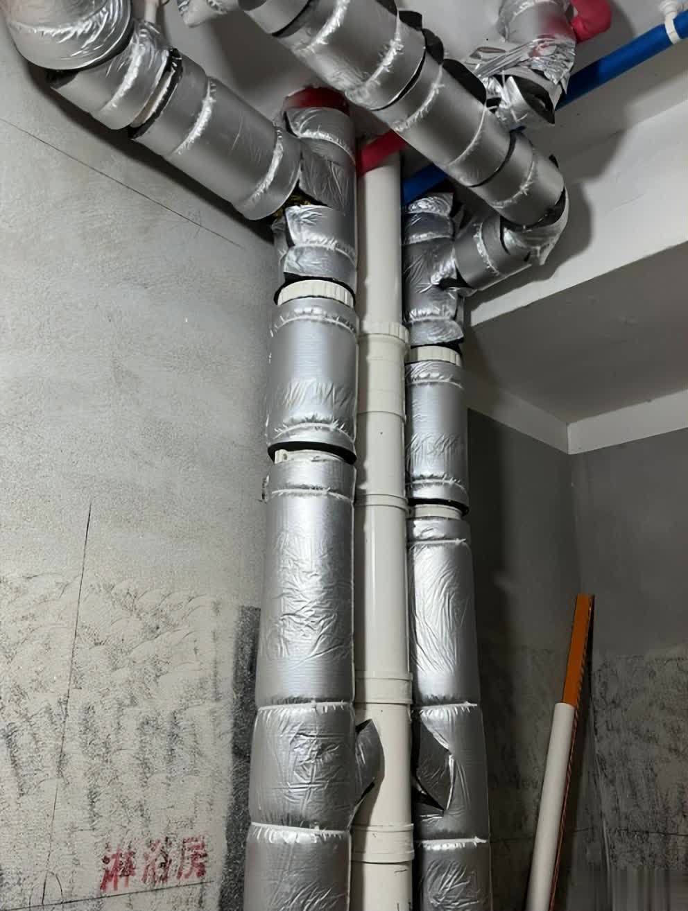 选择隔音棉时,要注意别把保温棉当成隔音棉,包上实则没效果。隔音棉应选厚度2公分、背面自带自粘胶的。包下水管前先把下水管表面擦干净,保证阻尼片能粘贴上去,防止后期粘贴不住。先包减震阻尼片再包隔音棉!阻尼片优先包横管、回水湾处和湾头处,能减少水流冲击产生的噪音。每隔40公分左右,用固定带固定一下会更坚固。